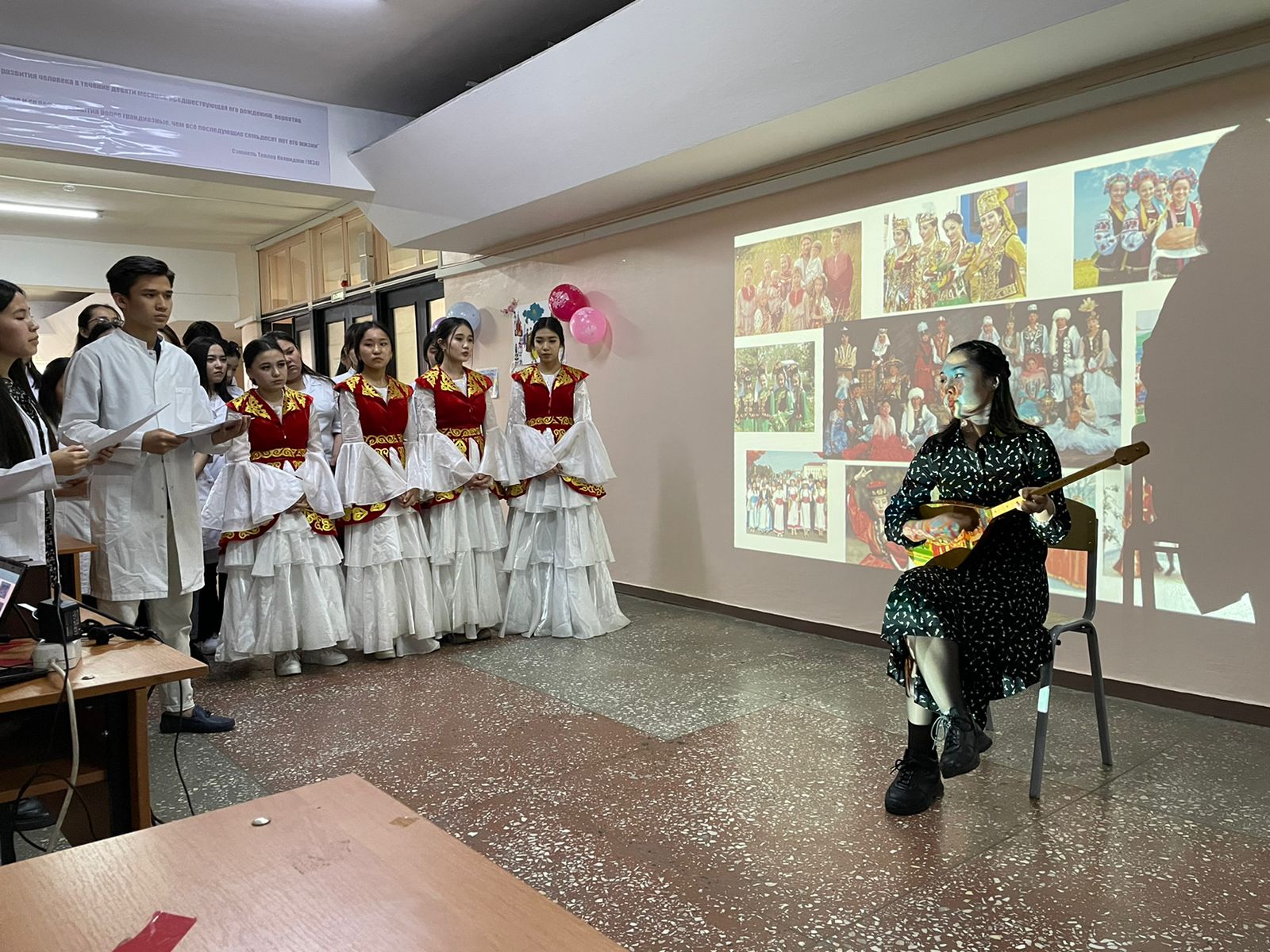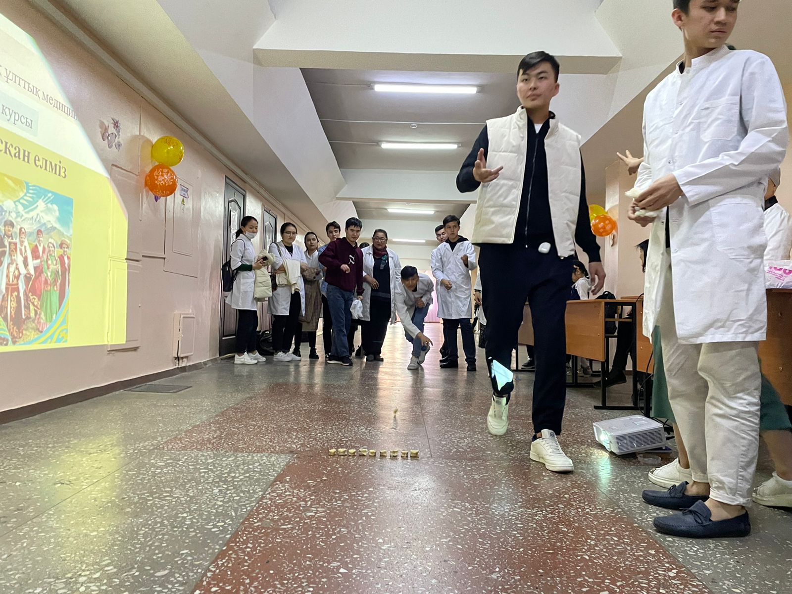 14.04.2022 күні Биофизика курсының оқытушылары Абдрасилова В.О., Нуртаева Г.К., Усипбекова Д.И. және  ЖМ21-014, ЖМ21-015, ЖМ21-016 кураторлық топ студенттерінің қатысуымен  ЖМ-1 мектебінің деңгейінде Қазақстан халықтарының бірлігі  күніне арналған «Бірлігіміз жарасқан елміз» тақырыбында іс-шара ұйымдастырып өткізді. Жалпы медицина мектебінің декан орынбасары Маймакова Айгерім Мейрбековна студенттерге жылы лебіздер айтып, болашақтарына сәттілік тілеп іс-шараны ашып берді. Студенттердің керемет дайындығы көрермендерге және іс-шара қонақтарына өте қатты ұнады. ЖМ21-014 тобының қыздары қазақ және ұйғыр билерін биледі, күй тартылып, ән айтылды. Көрермендердің қатысуымен асық ату, ләңгі тебу, қыз қуу сияқты ұлттық ойындар ойнатылды, интерактивті форматта жұмбақталған сөздер арқылы  мақал-мәтелдерді табу ойыны өте қызықты өтті.