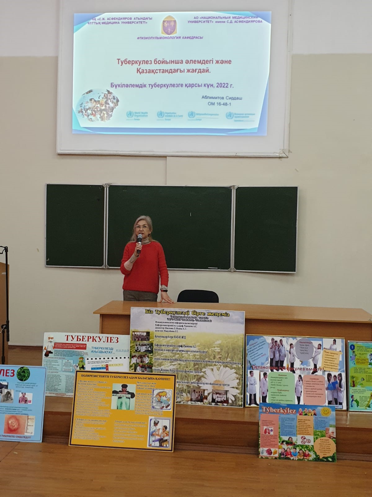 Дүниежүзілік туберкулезге қарсы күрес күніне орай 17.03.2022ж университетімізде ғылыми студенттік конференция өткізілді. Конференцияға факультет деканы және декан орынбасарлары шакыртылып,жиында туберкулездің алдын-алу және онымен күресудің жолдары қарастырылды. Қысқаша айтқанда заманауи емдеу тәсілдері сөз болды,сонымен қоса біздерді қуантатын жағдай, соңғы жылдары елімізде туберкулезбен ауру көрсеткіші 2 жарым есеге азайған.