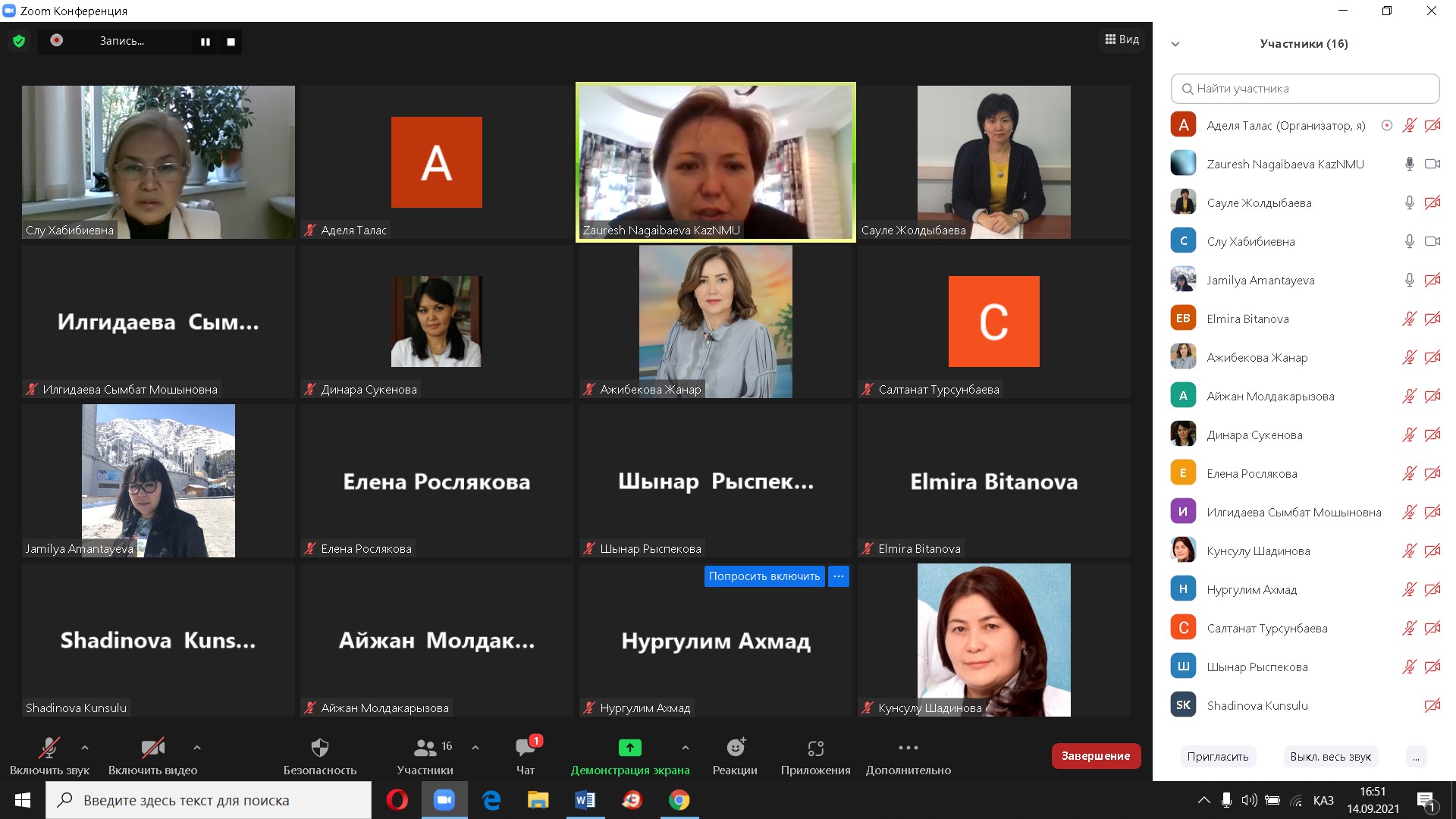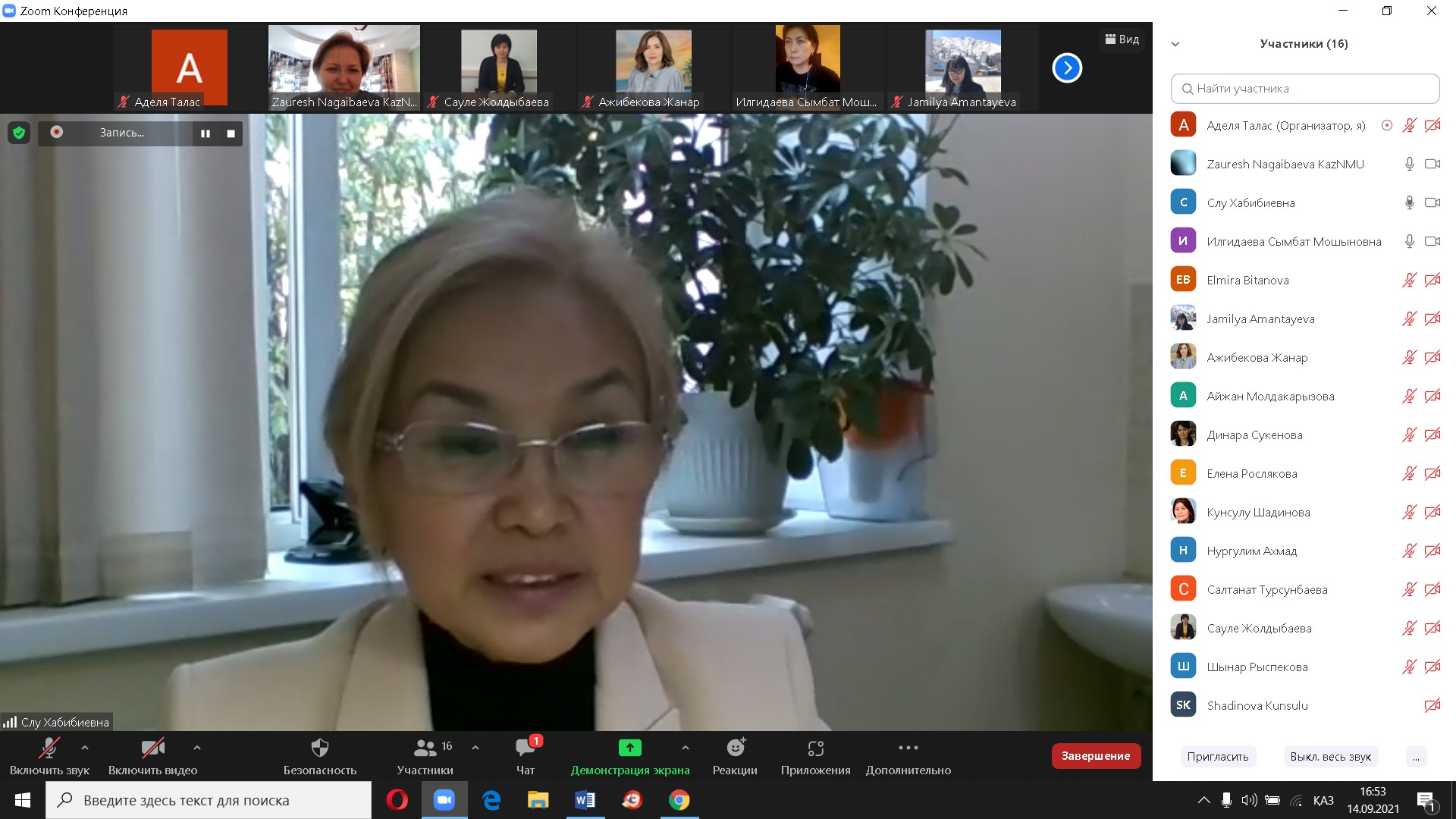 (KAZ) 2021 жылдың 14-ші қыркүйек күні Жалпы медицина-1 мектебінің деканы Слу Хабибиевна Измайлованың профессорлық-оқытушылық құрамымен онлайн кездесуі өтті. Күн тәртібінде ҚР Президенті Қасым-Жомарт Кемелұлы Тоқаевтың халыққа жолдауы талқыланды.