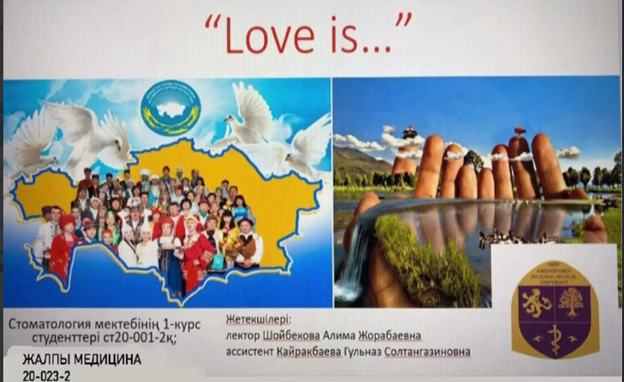 Оқу іс-шарасы 09.04.2021 14.00-14.50-де тілдік пәндер кафедрасының ағылшын тілі секциясында онлайн режимінде «Love is …» тақырыбында оқу іс-шарасы өткізілді.