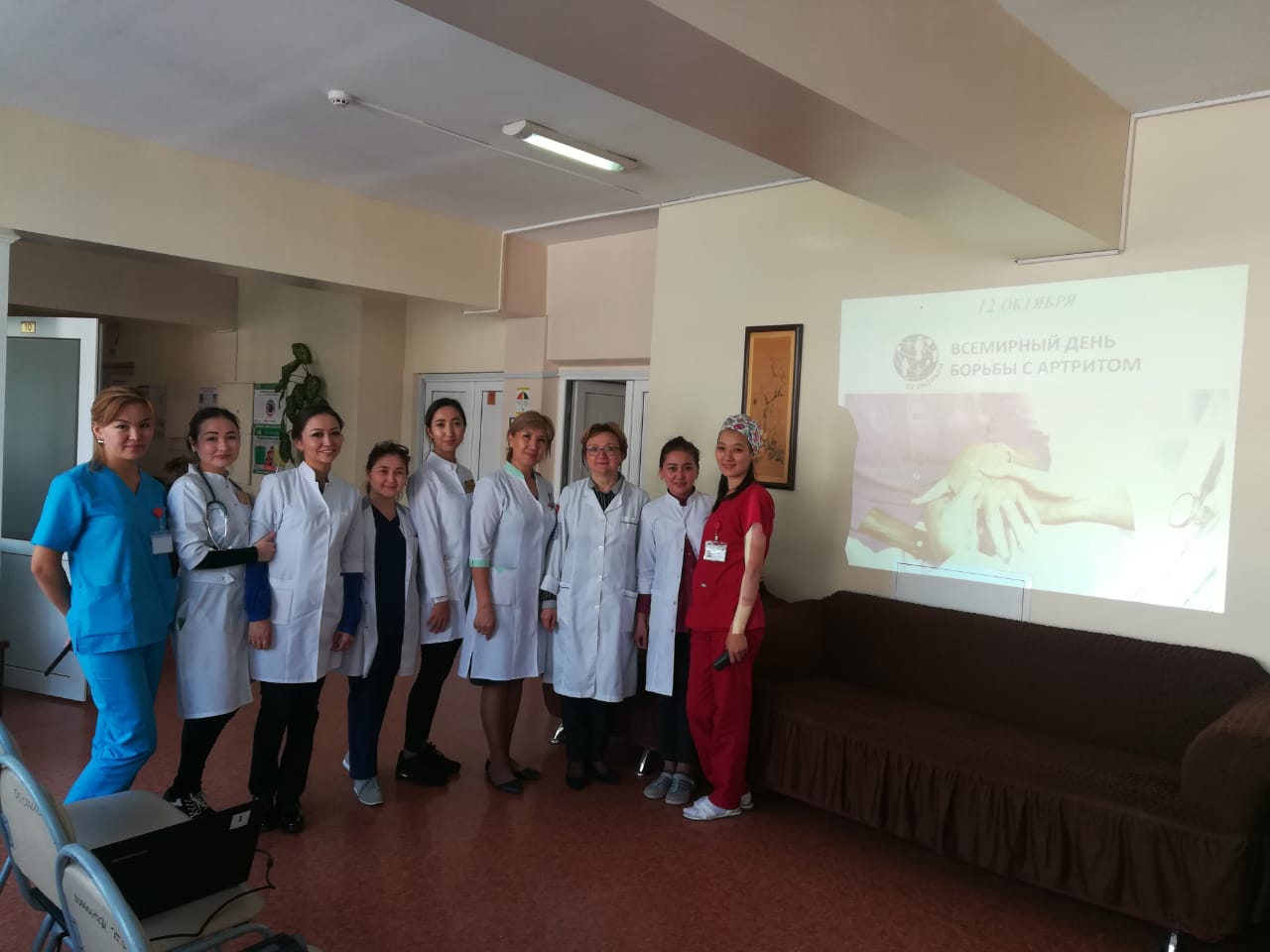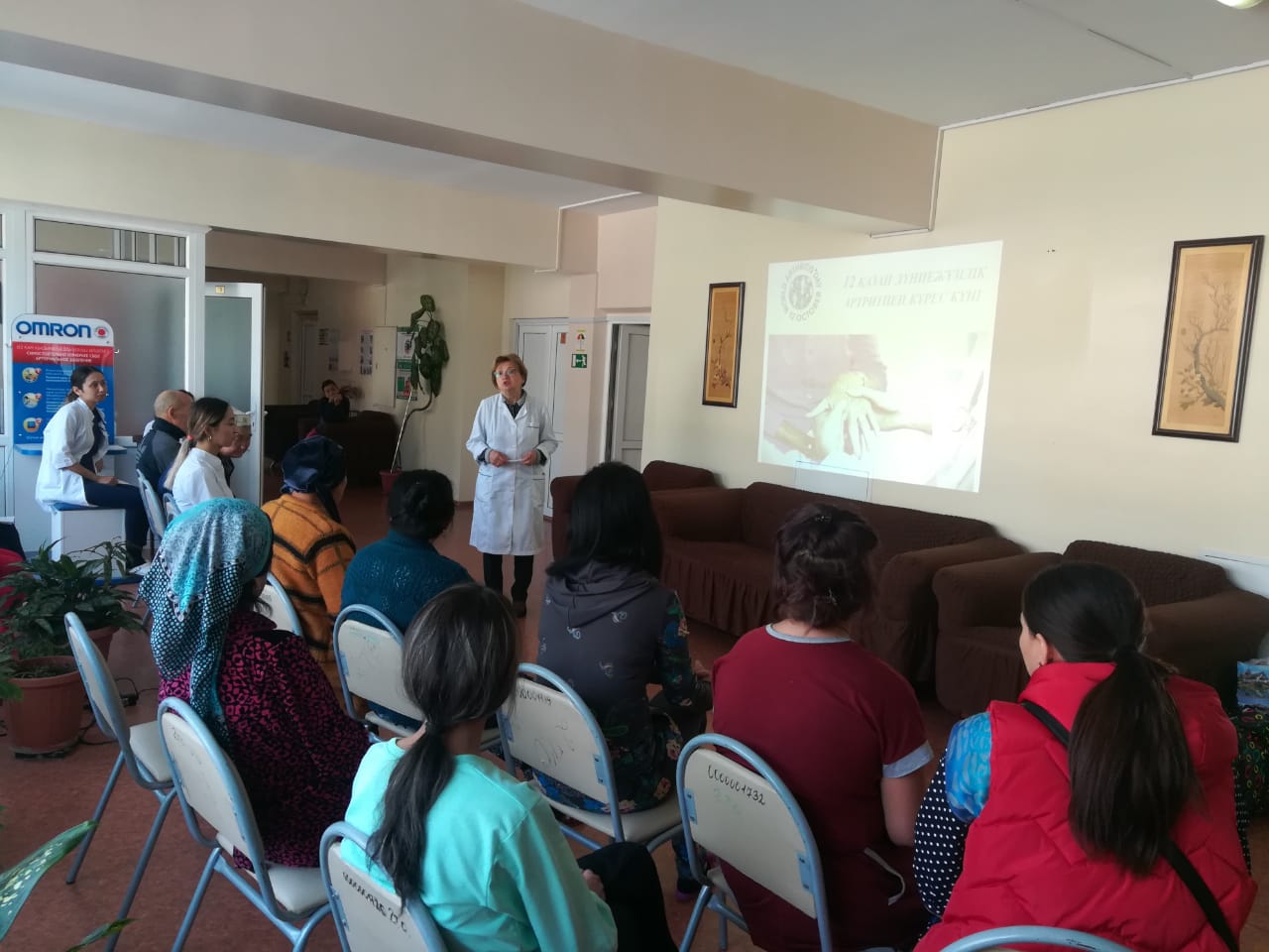 12 октября в честь Всемирного Дня борьбы с артритом Кафедра Внутренних болезней №3 ежегодно проводит школу артрита с информационной беседой на тему: «Болезни суставов» для пациентов ревматологического профиля «НИИ Кардиологии и Внутренних болезней» и для пациентов Городского ревматологического центра г. Алматы.