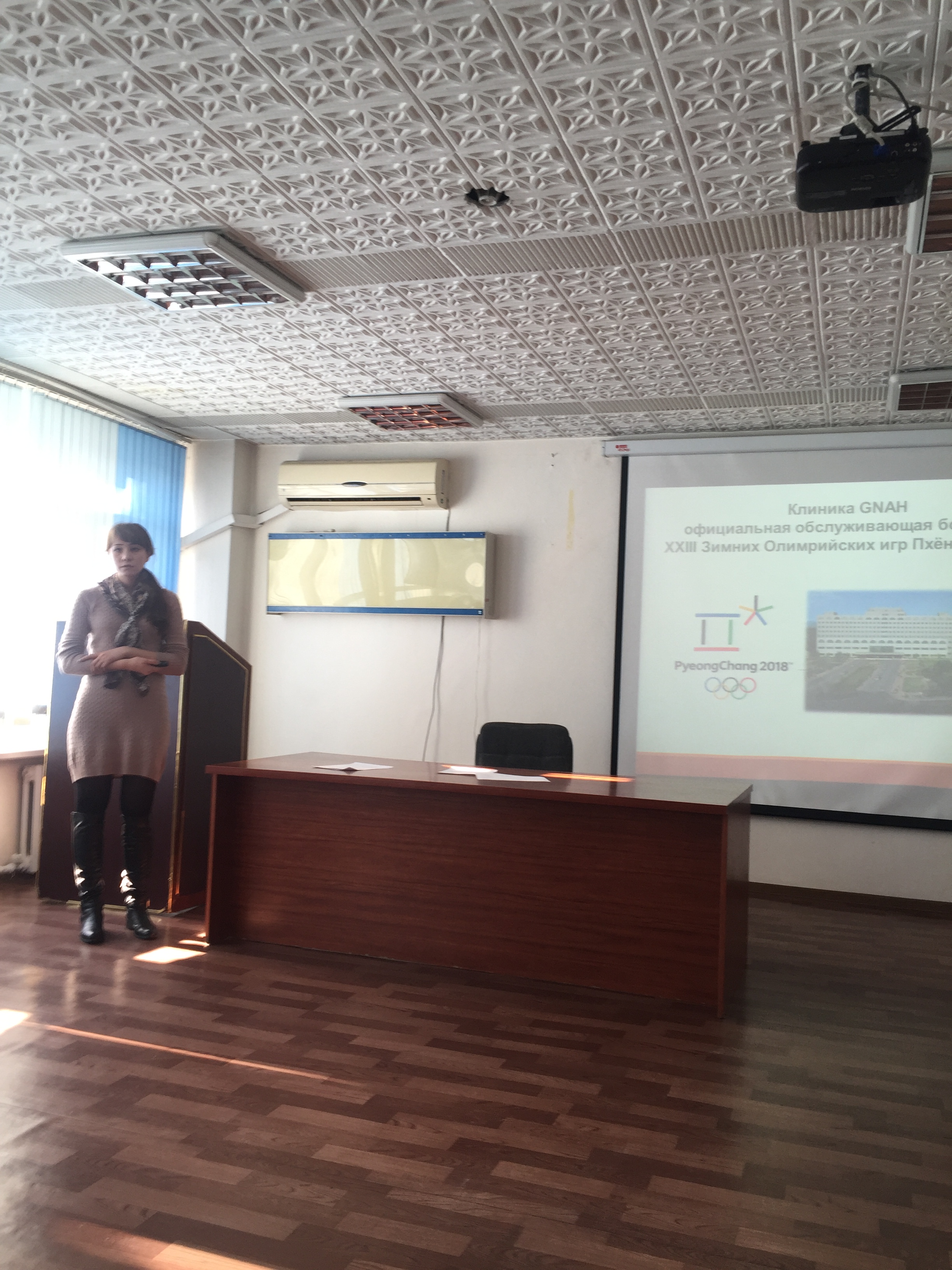 В качестве отчета по результатам научной стажировкивыступила PhD докторант 1-го года обучения кафедры неврологии и нейрохирургии КазНМУим.С.Д.АсфендироваЦой Р.Т. с докладом  «Реабилитация на примере опыта Южной Кореи, AsanMedicalCenter, Gangneung». Медицинский Центр Асан является клиникой №1 в Южной Кореи. На сегодняшний день клиника занимает лидирующую позицию в структуре ранней реабилитации неврологических пациентов. Комплексный подход обеспечивает 90% восстановление нервной системы. В докладе были освещены основные методические подходы реабилитации пациентов, перенесших инсульт, виды эрготерапии, физиотерапии, Speechtherapy, которые являются основными терапевтическими приемами в клинике Южной Кореи, также были приведены статистические данные, укомплектованность штатами и материально-техническое оснащение.