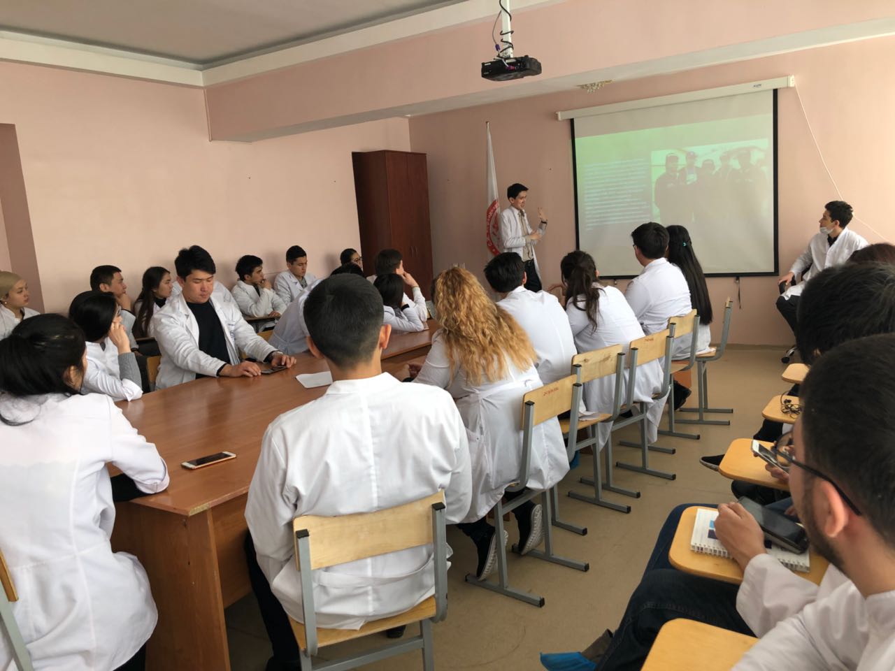 К подготовке данного мероприятия, студенты подошли с большой ответственностью. Спикерами подготовлены интересные доклады о статистике ВИЧ/ СПИД в РК (Анарбай Казына, 070-2 гр), теории происхождения ВИЧ (Самбет Санжар, 070-1 р), о путях передачи ВИЧ инфекции среди подростков и молодежи (Маделханкызы З., 070-1 гр.). Аралбаева Дарига рассказала о глобальных целях и задачах по профилактике ВИЧ-инфекции в РК к 2030 г. «90-90-90» (ЮНЭЙДС, 2014г.), направленных на прекращение эпидемии СПИДа. Студентами снят видеоролик (Эпен Нурдаулет, Салманова Асем, 070-1 гр.) «Нет дискриминации ВИЧ-инфицированных», в котором они сами снимались в качестве актеров (Мырзамурадов Асад, Достай Аида, Надырова Сайера, Эргашбаева Захро,). Сахметовой Камиллой и Ким Светланой была подготовлена викторина, которая вызвала интерес у студентов. Обсуждались вопросы о путях передачи (может ли ВИЧ передаваться через инструменты в салонах красоты и тату-салонах и почему? Как заражаются ВИЧ подростки? и т.д.), мерах профилактики ВИЧ-инфекции. Для студентов были подготовлены тесты по предоставленному материалу.
