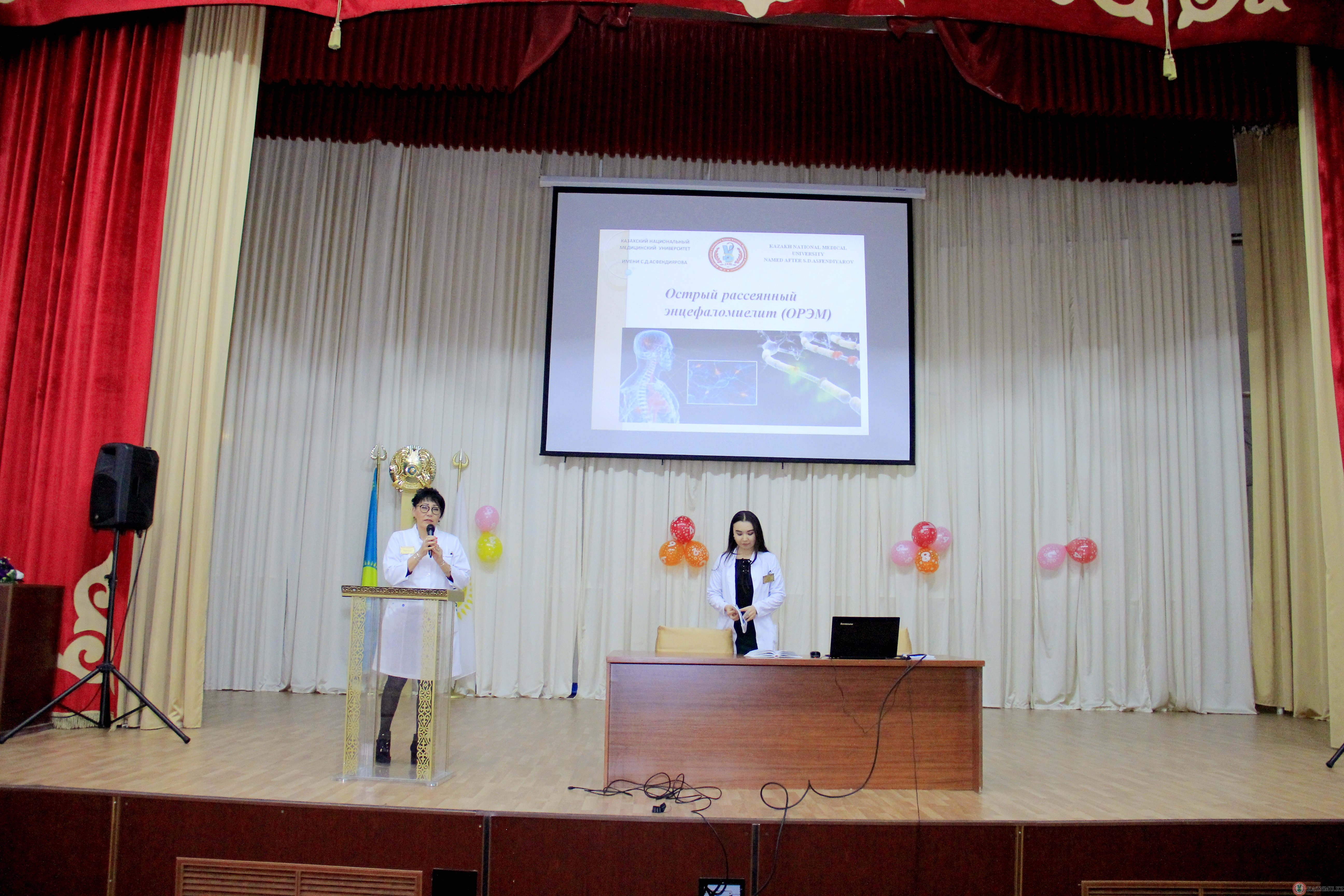 Cтуденты 5 курса специальности «Общая медицина» 001-1, 010-2 группы на практических занятиях провели конференцию по теме «Демиелинизирующие заболевания нервной системы». Актуальность данной темы заключается в ее медико-социальной проблеме. Распространненость демиелинизирующих заболеваниий за последние 10 лет выросла на 5-15 %, составив в среднем 50 больных на 100000 населения. В большей степени данное заболевание встречается в странах Северного полюса. Самое частое из демиелинизирующих заболеваний – рассеянный склероз. РС занимает одно из первых мест среди всех неврологических заболевании. В настоящее время отсутствие полного представления об этиологии и патогенезе заболевания, трудности лечения, высокий уровень инвалидизации делает эту проблему актуальной во всех странах. Конференция была проведена на клинической базе ГКП на ПХВ «Городская клиническая больница №1» на высоком уровне, охватив всех студентов с обратной связью в виде викторины по данной теме.
