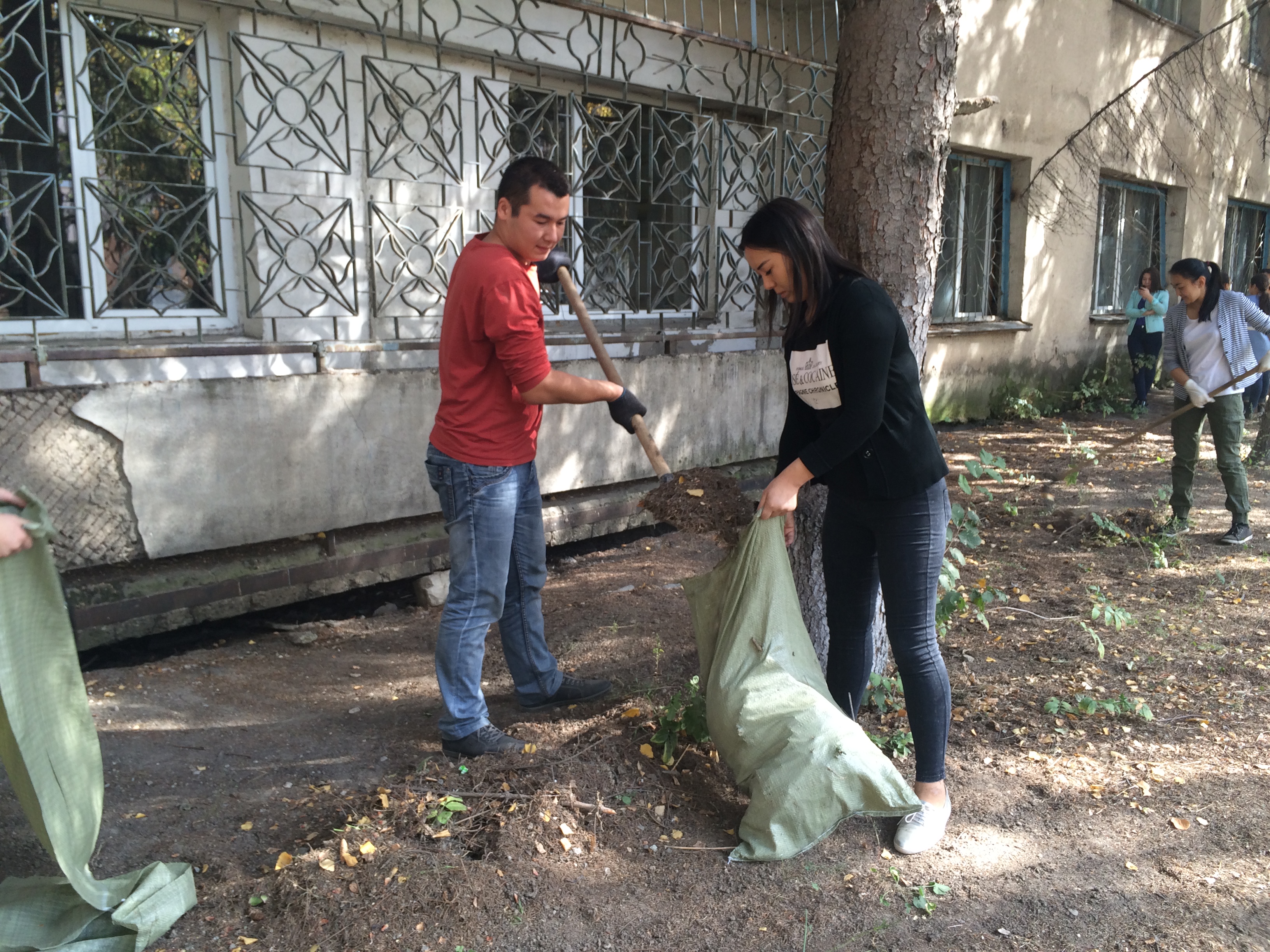 В мероприятии, стартовавшем во дворе железнодорожной больницы г. Алматы, расположенной по улице Акан Серы напротив универсама «Акжол», приняли участие сотрудники модуля нормальной физиологии и студенты III курса факультета «Общая медицина», относящиеся к центру интегрированного обучения (директор центра интегрированного обучения профессор Г.М.Есенжанова). Участники мероприятия были обеспечены необходимым инвентарем – перчатками и мешками для сбора мусора, вениками, лопатами.