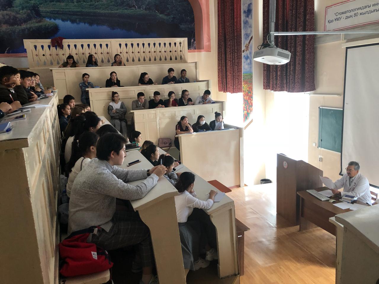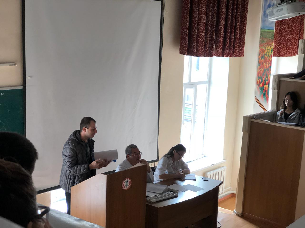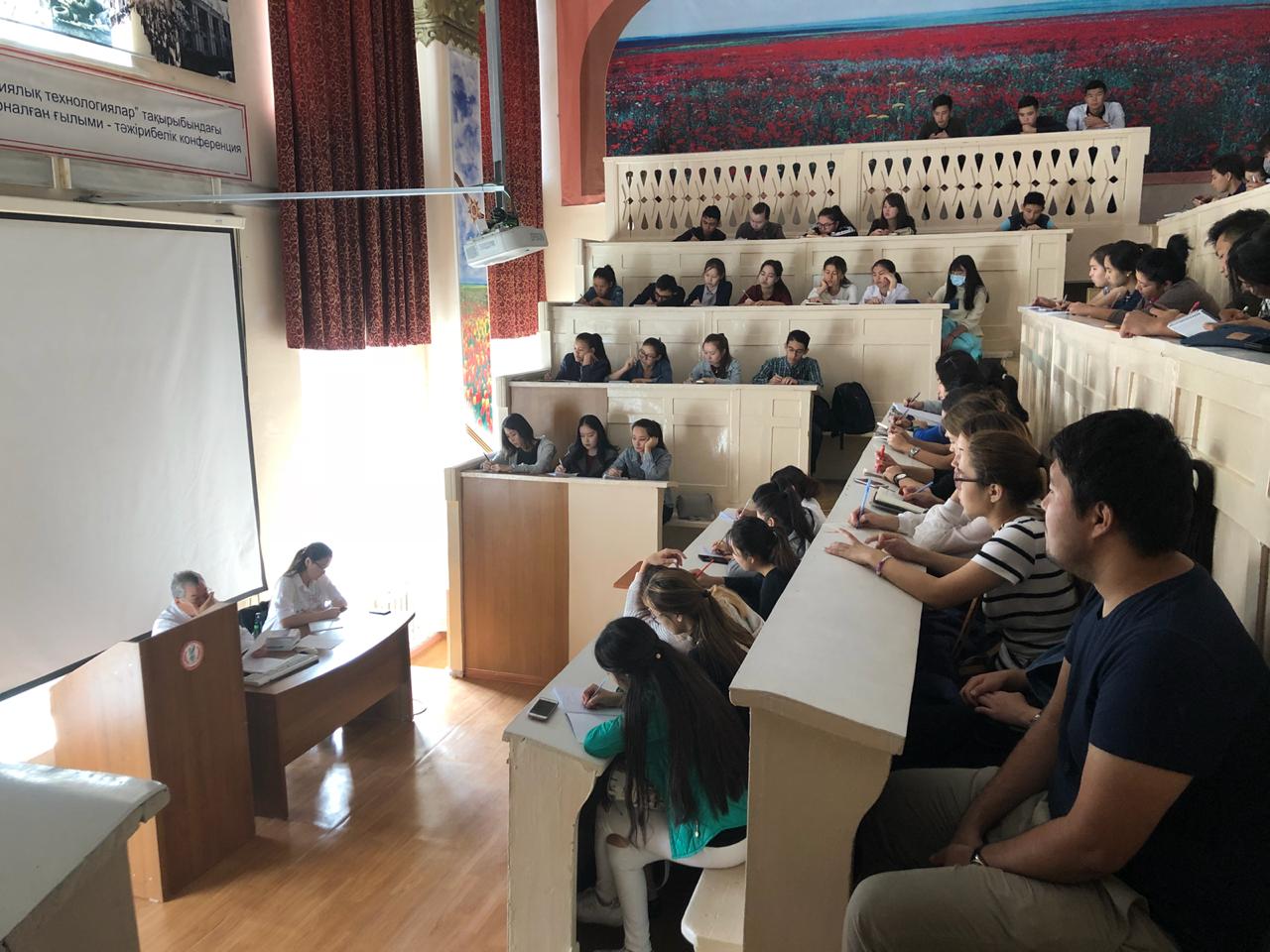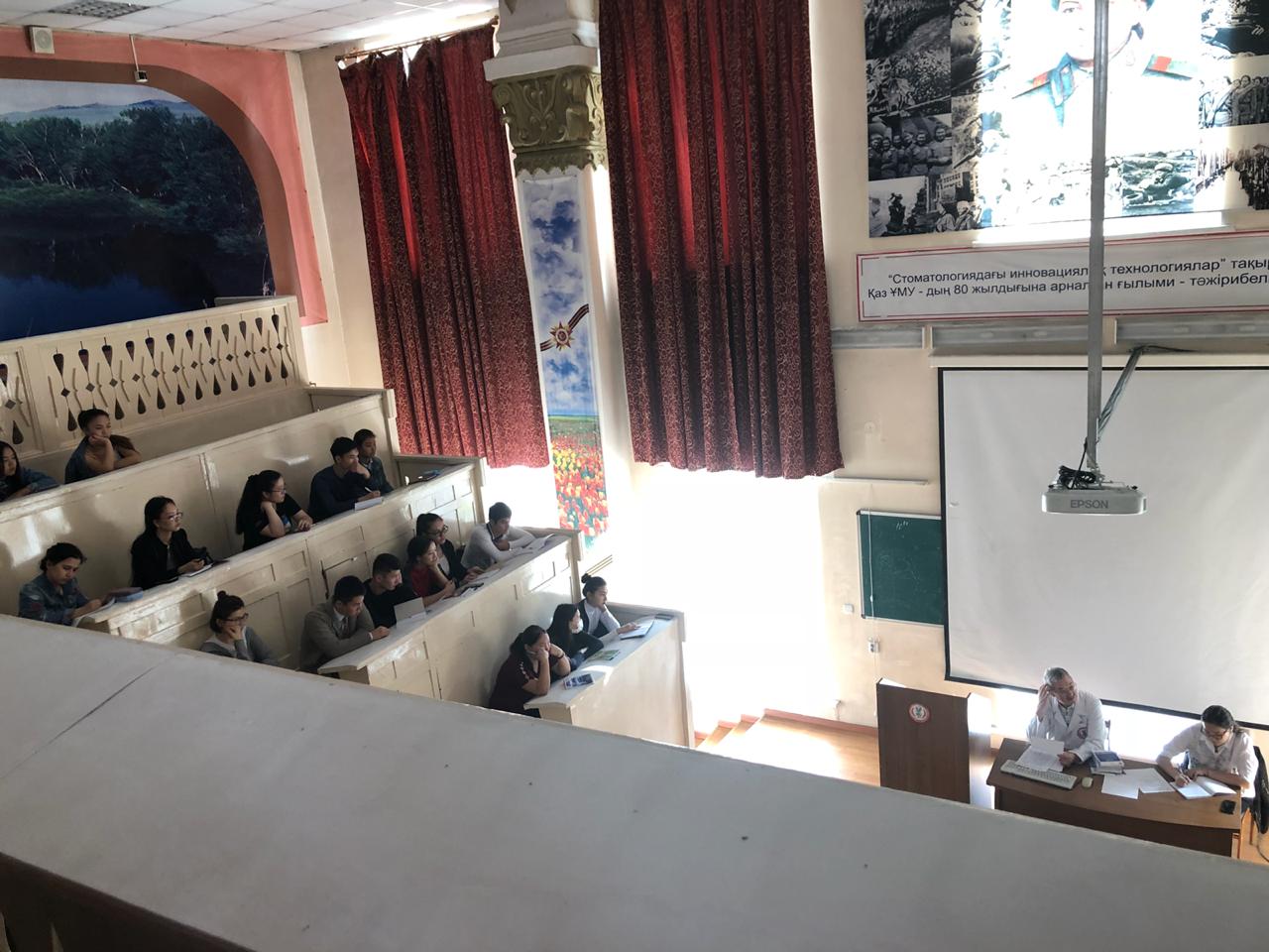 22 сентября 2018 года на кафедре нормальной анатомии ( зав. доцент Ахмад Н.С). прошло первое заседание НСК «Анатом». Руководитель НИРС кафедры : профессор Жаныбеков Д.Е. Присутствовали более 90 студентов младших курсов, преимущественно студенты ОМФ, а также молодые ученые кафедры. На заседаний НСК были заслушаны следующие вопросы: 1-организационный вопрос. 2- утверждение плана НИРС на учебный год. 3-разное. По первому вопросу: председателем НСК «Анатом» выбран студентка 3-го курса ОМФ Қайшыбай Ақеркем. Секретарем студентка 2-го курса ОМФ Бақытова Алия. По второму вопросу: заслушан и утвержден план НИРС и молодых ученых на 2018-2019 уч.гг. По третьму вопросу: студентам представлены темы научно-исследовательских работ. К информации прилагаются фотодокументы.