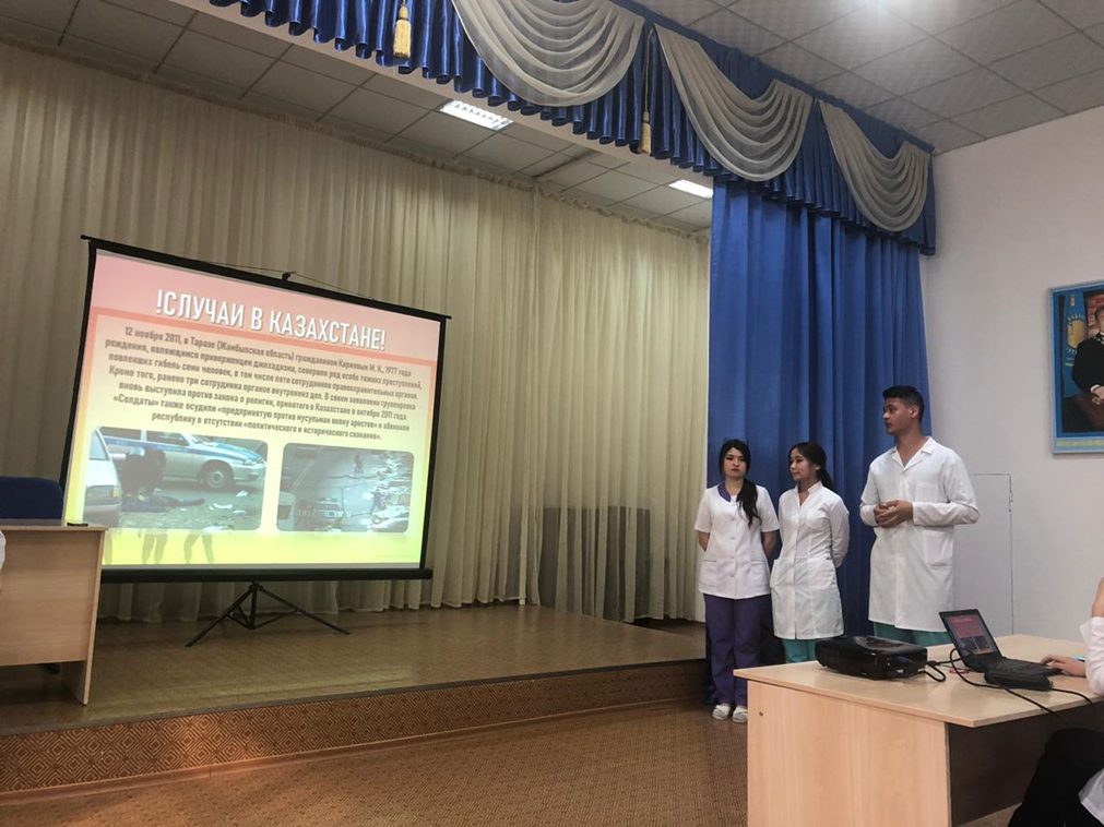 21 октября 2019 года кафедра детских инфекционных болезней  на  базе ДГИКБ провела мероприятие (на трех языках) «Профилактика религиозного экстремизма и терроризма на современном этапе» среди студентов факультета Общей медицины 4-го курса группы 010-1,2 (каз.), 013-1,2 (каз.), 012-1,2 (каз), 30-1,2 (рус),040-1,2(англ),7-го курса педиатрия группы 05-1,2 (каз), 08-1,2 (каз), ИБ-01,02, 03(резиденты 2год).