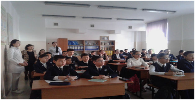 25 апреля 2017 года студентами 5 курса «Обшей медицины» была проведена воспитательная работа с учениками в специализированном лицее № 39-имени С.А. Ходжикова по заявке директора Жумалиева М.С. С докладом выступили студенты факультета «Общей медицины» 17-1 группы Қуатбек Малика и Нахаева Ұлданай в 9 «А» классе на тему: «Социально-психологические последствия употребления наркотиков и психоактивных веществ». Доклад на тему: «Здоровый образ жизни» подготовила студент факультета «Общей медицины» 20-1 группы Әбуғалиева Назерке для учеников 6 «А» класса. Тұрлықожаев Абзал студент 22-2 группы выступил с докладом о профилактике заболеваний опорно-двигательной системы под названием: «Движение – это жизнь». Студент 21-1 группы Абилкаир Ерлан прочитал доклад на тему «Закономерности развития детского и подросткового организма, гигиена подростков для учеников 7 и 8 классов.