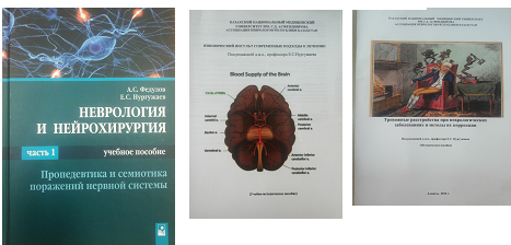 «Диагностика және емнің қазiргi аспектiлерi», «Арқадағы ауырсынулар». Профессор Ж.Р.Идирисованың нейроинфекциялар бойымен жасалған емдеудiң алгоритм оқу құралдары «Балалардағы демиелинизацияланған аурулар», «Балалардың цереброваскулярлы аурулары», доцент Г.А.Мұхамбетованың бала неврологтарына әдiстемелiк құралдары жазылған «Балаларда невроздар және невроз сияқты бұзылулар», «Балалардағы когнитивтi дамуының бұзылулары».