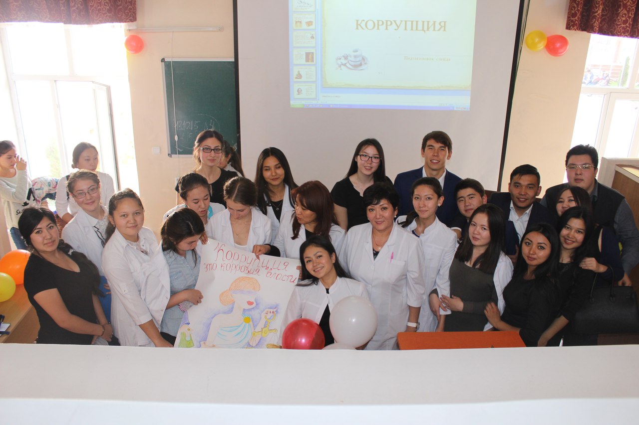 Особенно понравилась всем сценка «Коррупция в медицине» с участием студентовҚұлдыбай Әсем, Нурсеит Нуркен, Чәкен Ержан, Оразғалиева Назерке, Әбдікерім Балтөре, Ескендір Дина. Завершилось мероприятие викториной «Эрудит.Коррупция». Участникам были вручены грамоты, гости выразили благодарность организатораммероприятия.