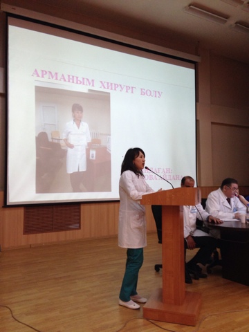 11 апреля 2014г. в большом конференц-зале городской клинической больницы №4 г.Алматы кафедрой хирургических болезней № 1 КазНМУ им С.Д. Асфендиярова была проведена конференция в рамках празднования 125 – летнего юбилея государственного и общественного деятеля С.Д. Асфендиярова, на тему «Кім боламын? – медициналық мамандықтар жастардың көзқарасымен». Целью конференции было – обеспечение профессиональной ориентации студентам 4 курса факультета «Общей медицины». Конференция прошла с участием ведущих специалистов клинической базы ГКБ №4, студентов 4 курса факультета общей медицины.