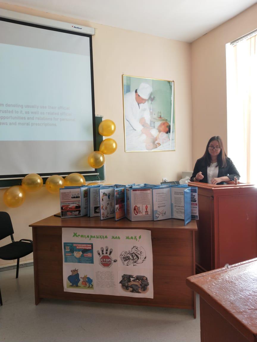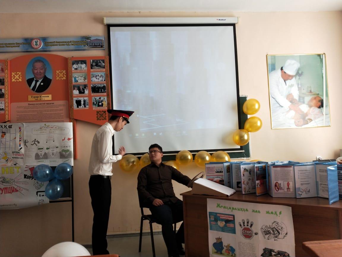 Студенттердің білімін тексеру мақсатымен презентациялардан соң қатысушылардың арасында сұрақ-жауап өткізілді. Баяндамалар жемқорлық және оның зардаптары, себептері мен жемқорлық көрсеткіштеріне басты назар аудартты.