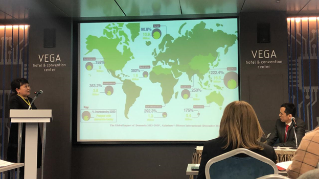 іс-шараға нейрохирургия курсымен жүйке аурулары кафедрасының меңгерушісі С. Т. Турыспекованың жетекшілігімен кафедра ассистенті Б. К. Демесинова және жалпы медицина факультетінің 5 курс студенттері М. С. Ахмет және А. Б. Жомартова белсенді қатысты. Ассистент Б. К. Демесинова “қазақ популяциясындағы 60 жастан асқан тұлғалар арасында орташа когнитивтік бұзылыстар скринингінің алғашқы нәтижелері” тақырыбында ғылыми баяндама жасады, ал біздің студенттер баяндамасының тақырыбы: “Артериялық гипертензиямен ауыратын науқастардағы когнитивтік функциялардың жағдайы” болды.
