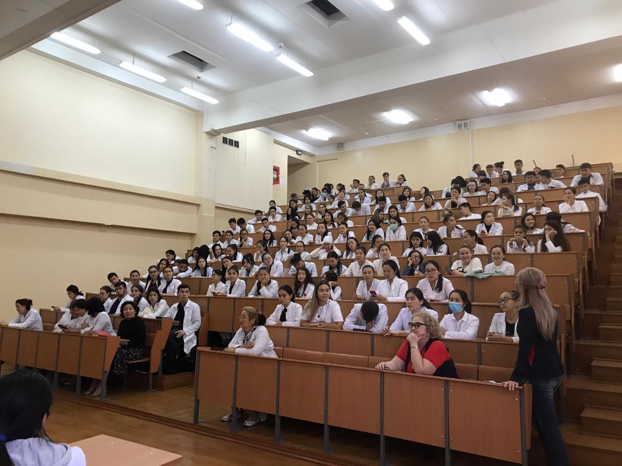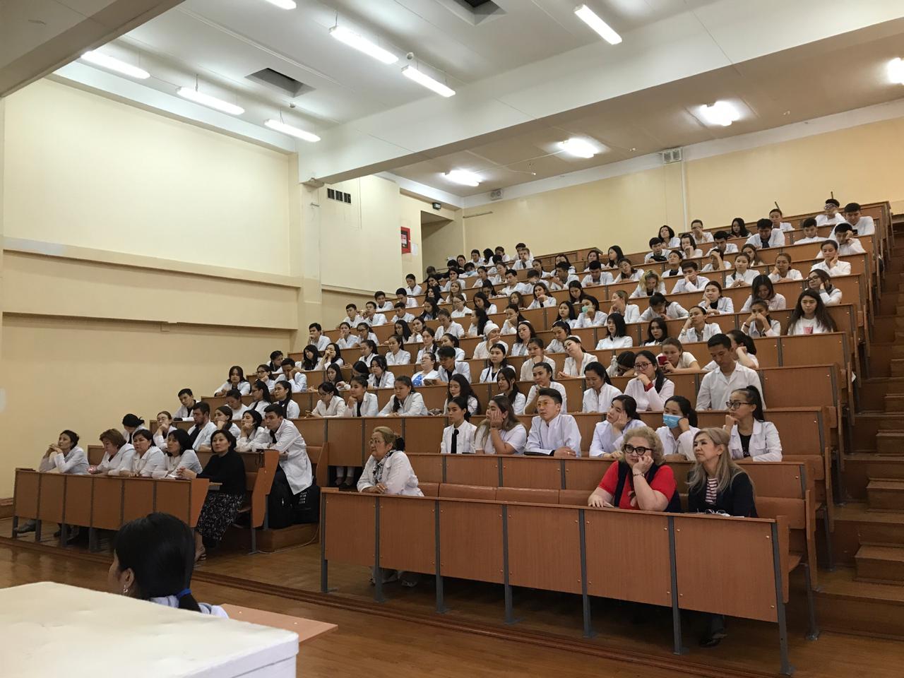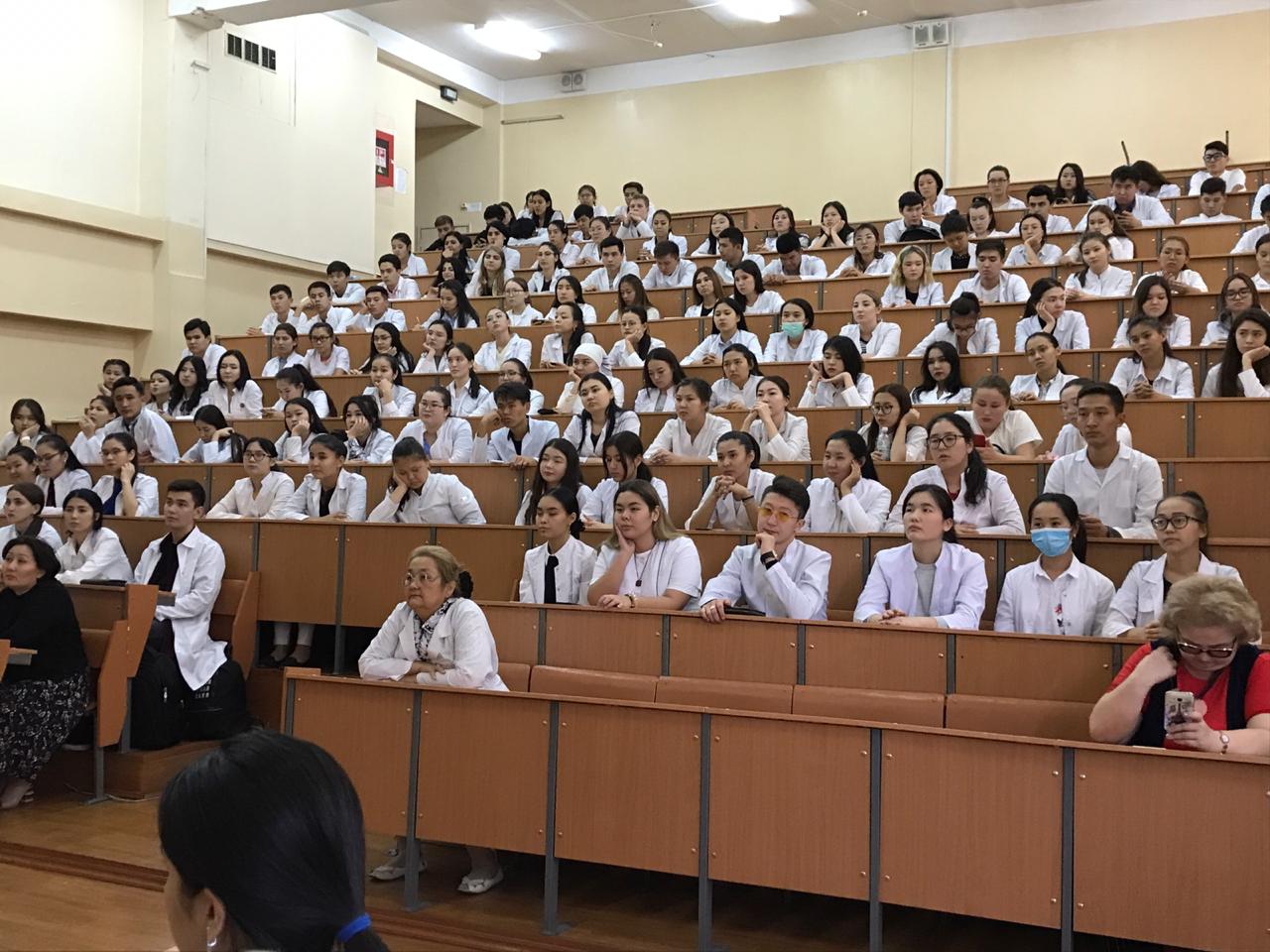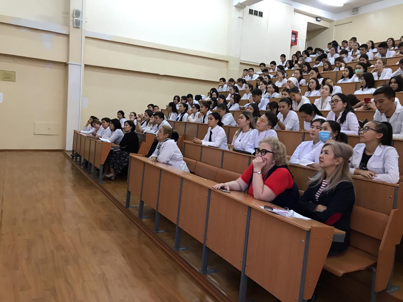 27.09.2019 г. в аудитории №8 под руководством деканата Школы общей медицины проведено обсуждение Послания Президента с участием профессорско-преподавательского состава кафедры нормальной физиологии: заведующей кафедрой, доцента Рыспековой Ш.О., доцента кафедры Жетписбаевой Г.Д., лектора кафедры Джусипбековой Б.А., Шайхынбековой Р.М., Артыкбаевой У.С., Алипбековой А.С.; профессорско-преподавательского состава кафедры гистологии: заведующей кафедрой, доцента Ергазиной М.Ж., лектора кафедры Алсеитовой Ф.Д., ассистента кафедры Омаровой Р.С., а также студентов 2-го курса Школы общей медицины. В организации мероприятия приняли участие декан Школы общей медицины Шопаева Г.А., заместители декана Школы общей медицины Измайлова С.Х., Матмуратова Б.К., Мукашева М.С., Ильясова А.Д., Орадова А.Ш., Курмангалиева Ж.Ж.; специалисты Школы общей медицины Ансаганова Ж.А., Маймакова А.М., Исаева М.Н., Тусупбекова Э.К..