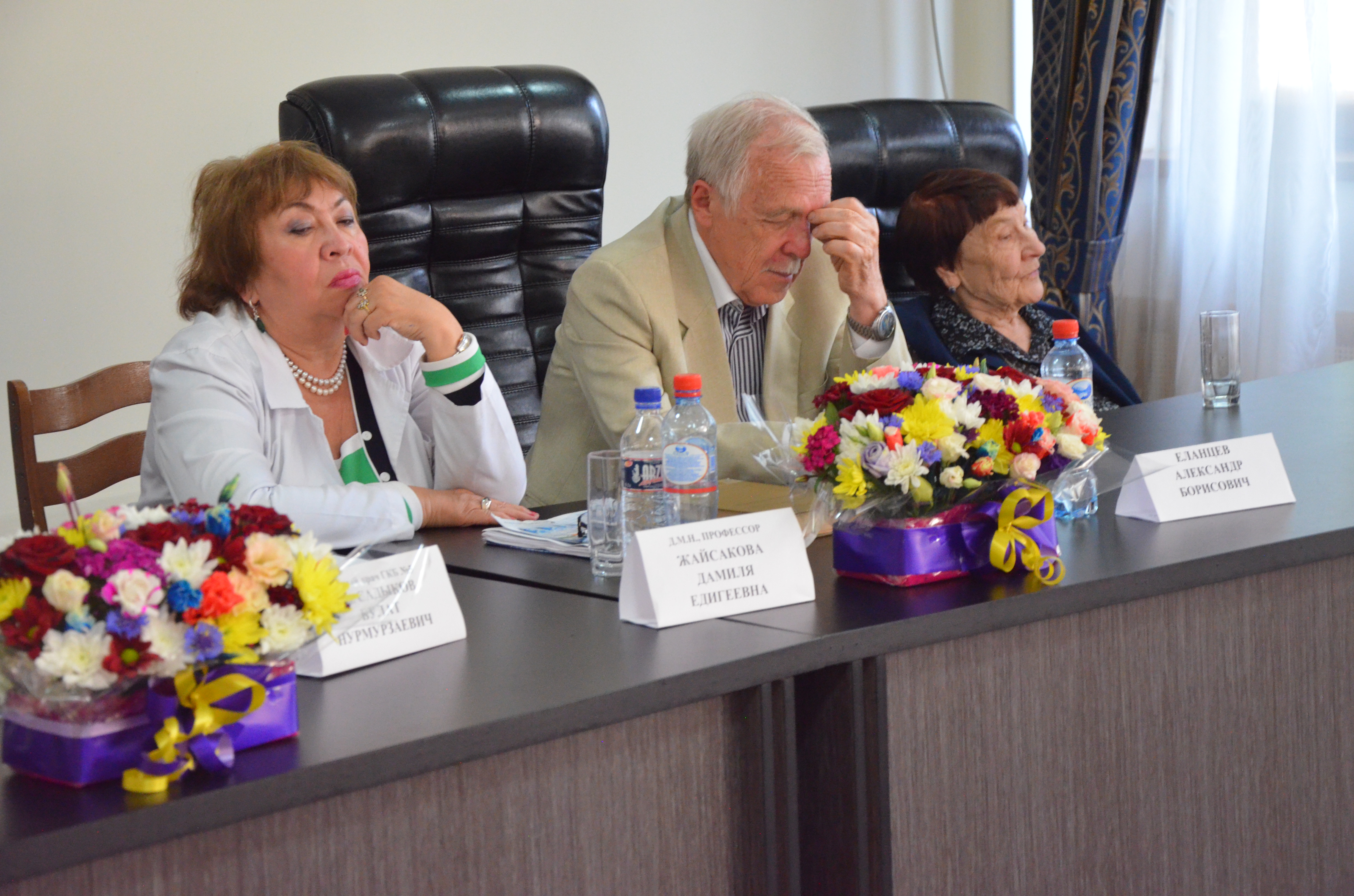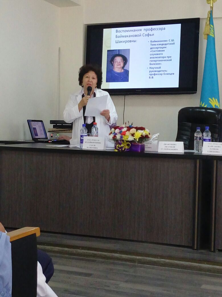 Сонан соң м.ғ.д., кафедраның профессоры Жайсақова Дәмелі Едігеқызы кеңестік оториноларингология ғылымының көрнекті кемеңгері, профессор Б.В. Еланцев туралы баяндама жасады.