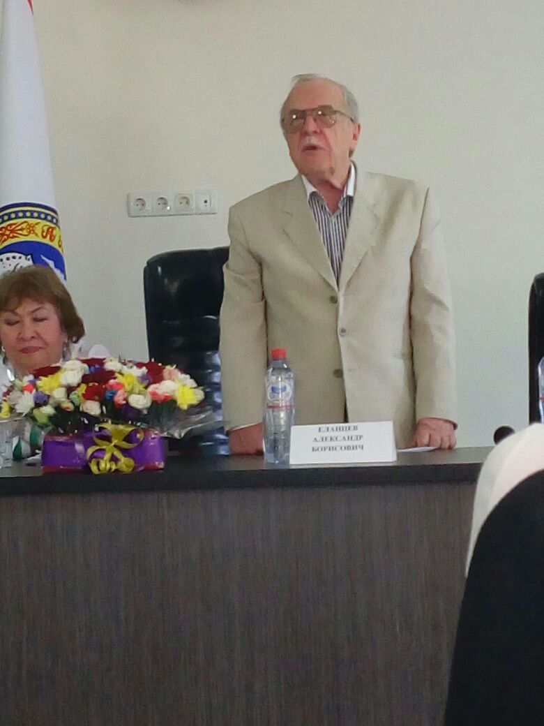 Президиумде: профессор  Б.В. Еланцевтың ұлы –  Еланцев  Александр Борисұлы.