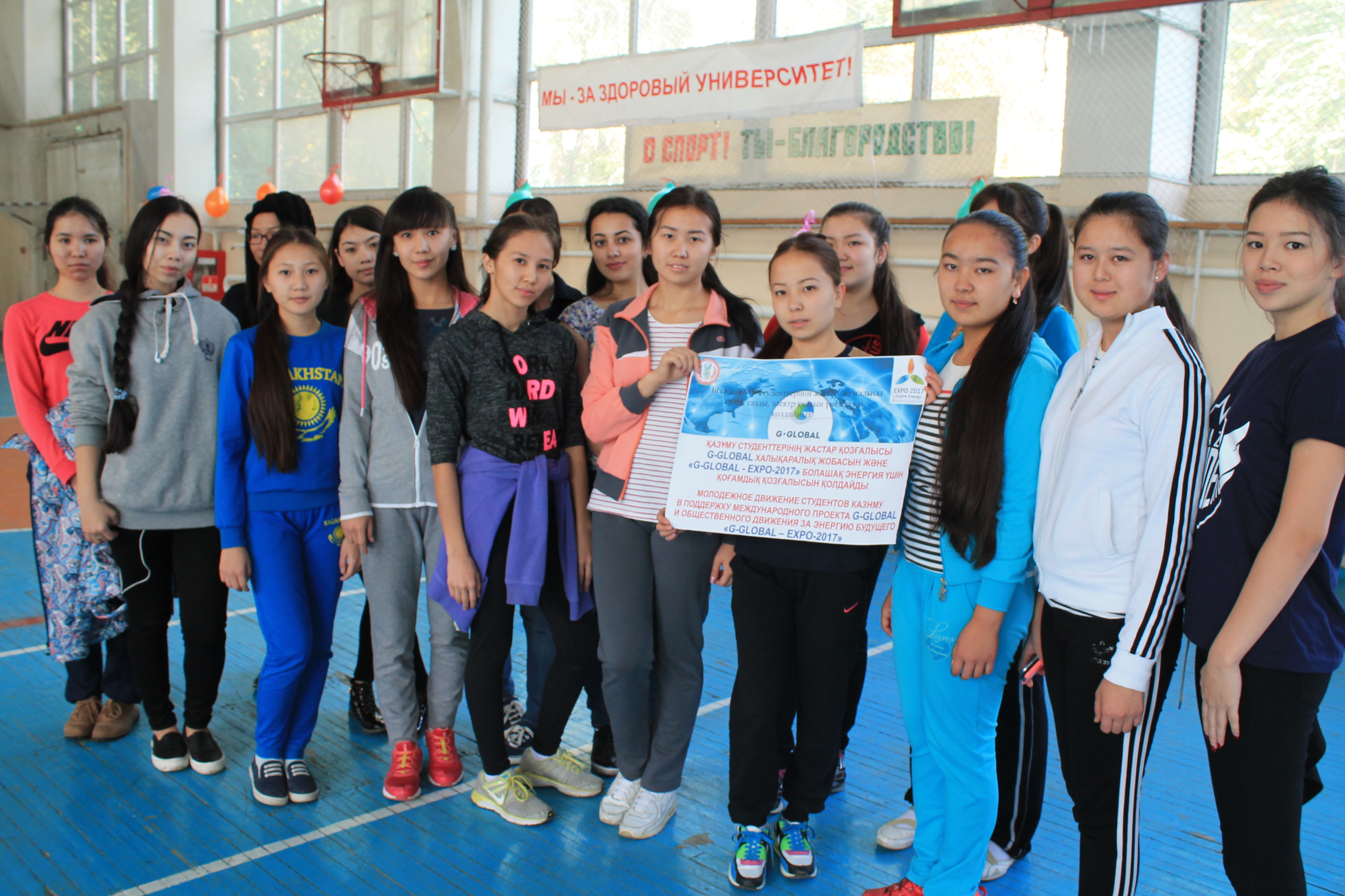 17 октября 2015 года в спортивном комплексе КазНМУ была проведенамежвузовская спортивно-оздоровительная Спартакиада «Движение – жизнь, здоровье, активное долголетие!» посвященная 85-летиюКазНМУ им. С.Д. Асфендиярова и в поддержку международного проекта G-Globalи общественного движения за энергию будущего «G-Global-EXPO-2017» с участием Департамента по развитию социально-культурных компетенций студентов.