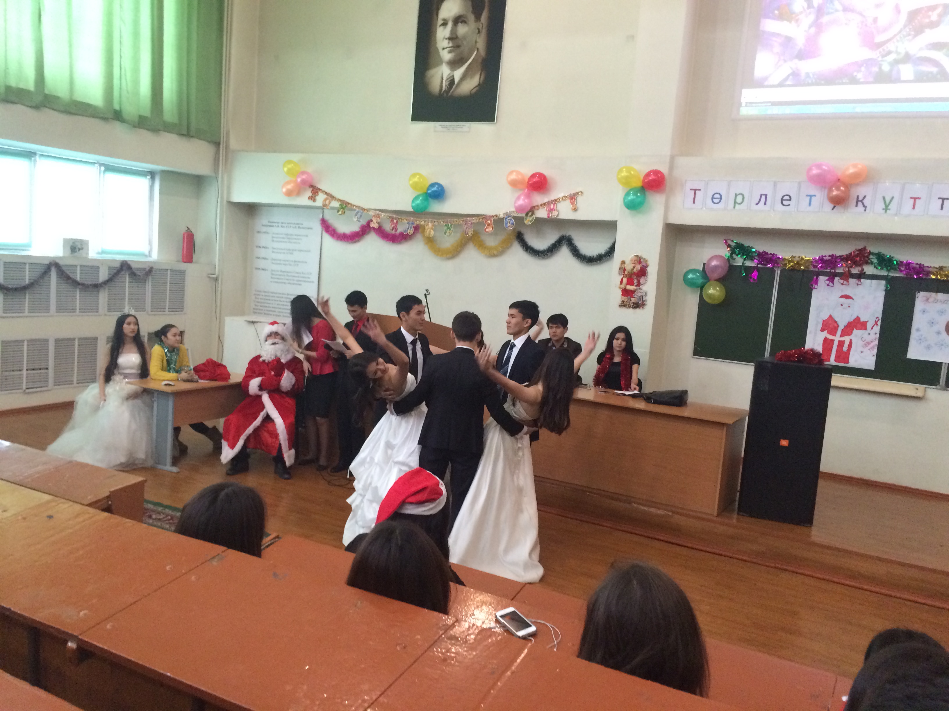 Жаңа жыл-қашанда әр адамның жүрегіне жаңа үміттер мен аппақ армандар ұялататын, ғажайып қиялдарға қол создыратын ең сүйікті мерекеміз. Осы мерекеге орай «Қалыпты физиология» кафедрасы және Жалпы медицина факультетінің 1 курс (009, 010, 012 топтары) студенттерінің ұйымдастыруымен  «Төрлет, құтты Жаңа жыл!» атты мерекелік кеш өтті. Кешке кафедраның оқытушылары мен студенттер қатысты. Кешті өзінің құттықтау сөзімен  қалыпты физиология кафедрасының оқытушысы, аға тьютор Джусипбекова Балжан Абдрамбековна ашты. Мерекелік кешіміз қыздар мен жігіттерден құралған «Сағындым Алматымды » атты әнге ырғақты бимен басталды. Жаңа жылдық кешіміздің сәнін кіргізген кейіпкерлеріміз Аяз ата ролінде Оралбаев Абзал мен Ақшақар ролінде Тас Мадина ойнады. Әсем әндер шырқалды: Атажанова Зульфия, Маралбай Даурен, Бабахан Сержан және  би биленді. Қонақтарымыздың көңілін көтеру үшін қызықты ойындар ойнатылды, ойынға студенттер мен оқытушылар қатысты. Барша өнерпаздарымыз бен ойынға қатысушыларға Аяз ата сыйлықтарын таратты. Кеш соңында оқытушы Кожаниязова Ардак Нургалиевна жиналған қауымды жаңа жыл мерекесімен құттықтап, қортынды сөз сөйледі.   Кеші көңілді, әрі әсерлі өтті.