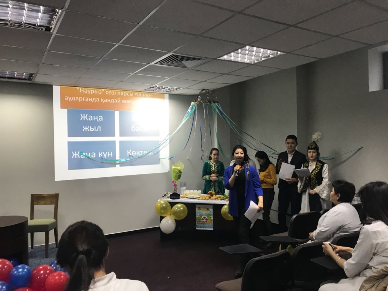 Дөңгелек үстелде Наурыз мейрамының тарихы баяндалды. Студенттер өлең оқып,күй тартты. Қазақ халқының дәстурлеріне байланысты сұрақтар-жауап жүргізілді. Студенттер арасында қазақтың салтына сай айтыс ұйымдастырылды.
