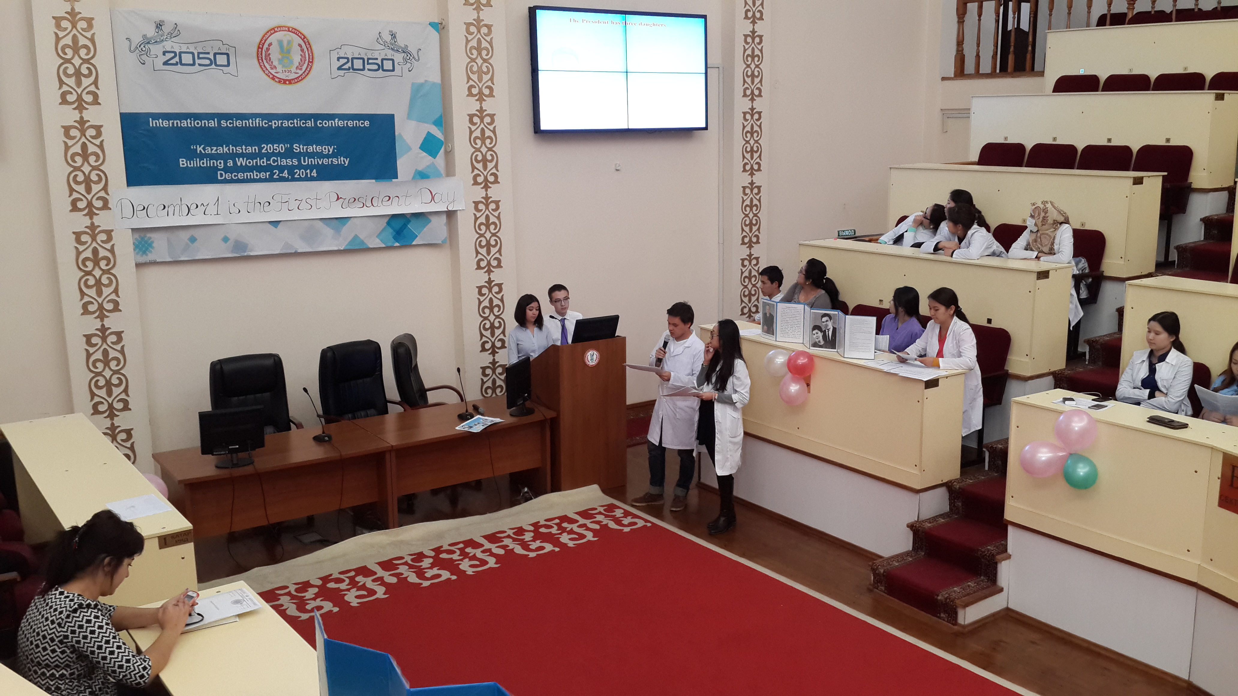 Контингент студентов формировался из государств таких как: Коралевство Иордании, Индия, Афганистан. В ходе данного мероприятия модераторами выступили студенты 3 курса факультета «Общая медицина» Калиуллаев Берик, Кадырбекова Дияра. А также студентами факультетов «Фармация» Бекжанов Адиль, Бетимбетова Алтынай, «Стоматология» Айтымбетова Ақбаян, Амзеева Алина, Жанысбек Айжан, Нуралыева Алима были демонстрированы презентации из жизнедеятельности Первого Президента Республики Казахстан направленные на раскрытие вопросов правового статуса, полномочия, роли и заслуги Первого Президента РК. Студентами было отмечено всемирно признанный авторитет Первого Президента Казахстана.