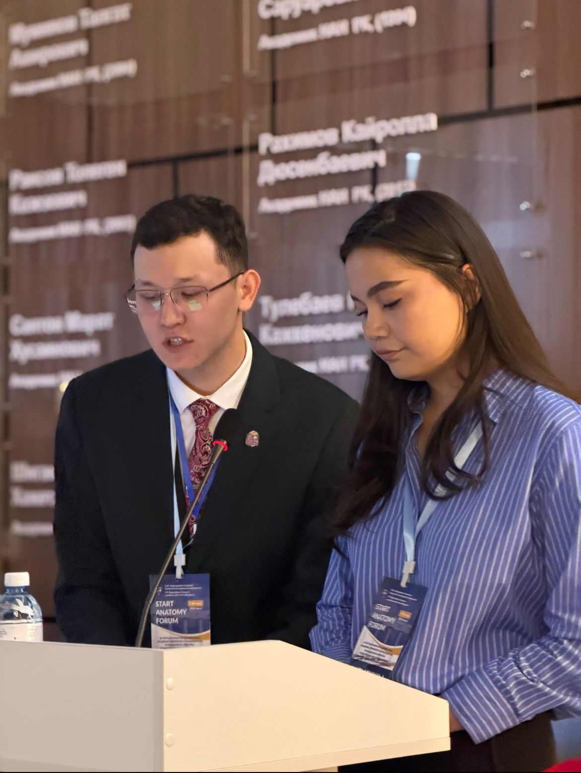Форумның жүргізушілері: Кусаин Дильназ —1 курстың (25-005қ топтың), Ажибай Нұрдаулет —2 курсттың (24-009қ топтың) «Медицина» факультеттің студенттері.