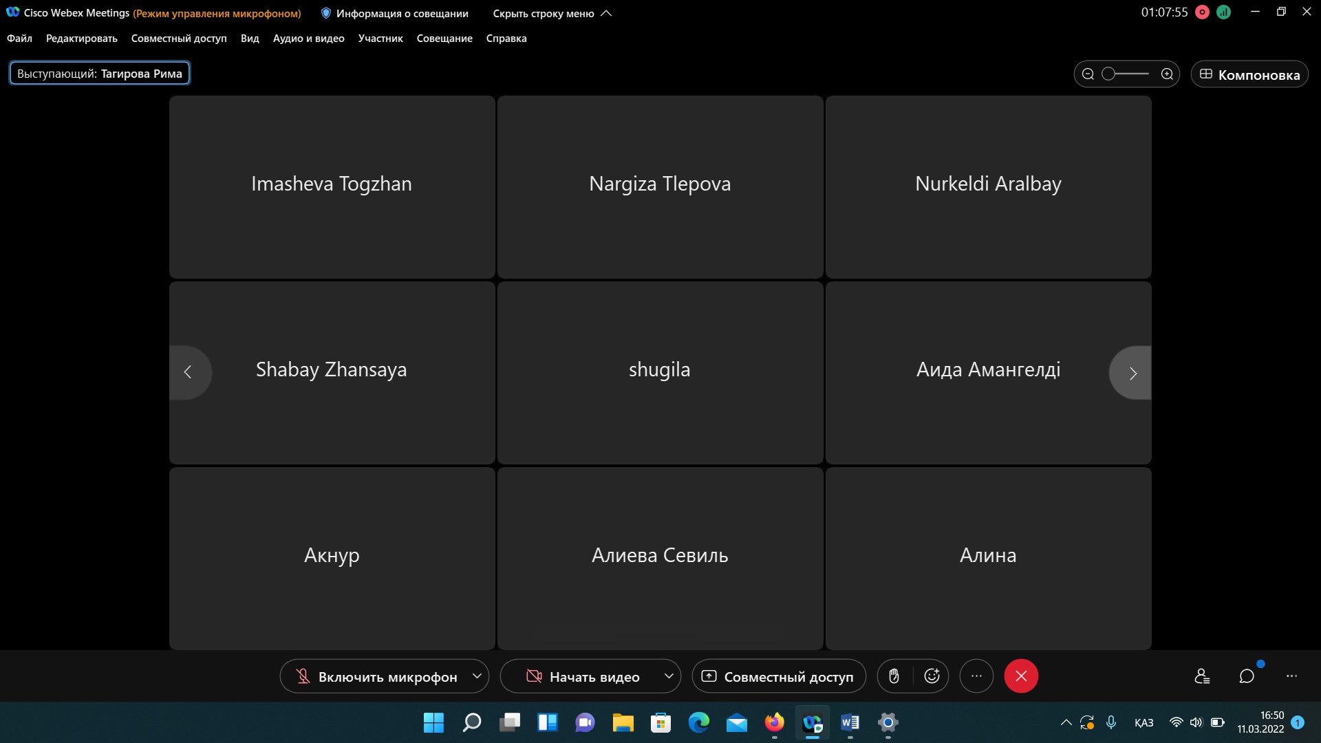 Жалпы медицина-1 мектебі деканымен декан орынбасарлары қатысуымен 11.03.2022ж 16:00-де  барлық 1,2,3 курс студенттерімен онлайн форматта жиналыс болды. Жиын өткізудегі басты мақсат- студенттердің жол төлемі және оқу үрдісіне қатысты студенттерді толғандыратын сұрақтарға жауап беру. Жиналыс барысында студенттерден алынған анкеталық сурақтардын нәтижесі талқыға түсіп сонымен қоса студенттер тарапынан болған оқу процесіне ұсыныстары мен козкарастары қарастырылды.