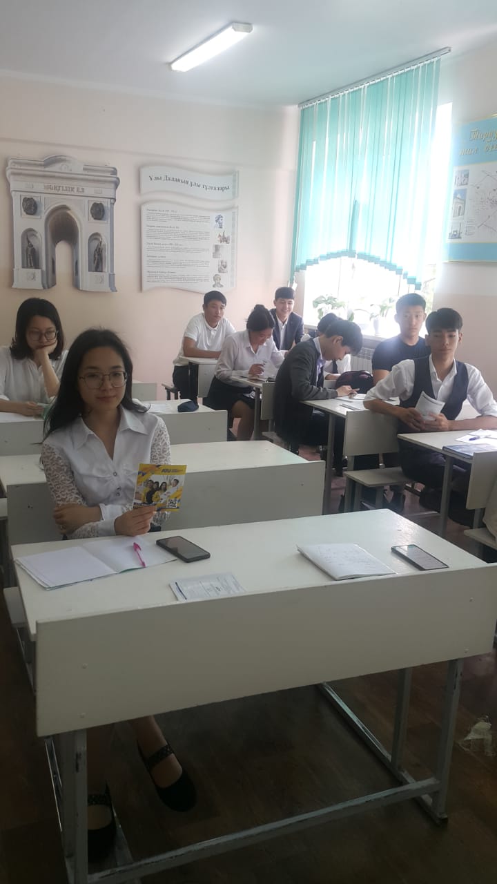 2021-2022 оқу жылында С.Ж.Асфендияров атындағы Қазақ Ұлттық Медицина Университетінің 3 курс 23-01 тобы студенті Күнтуарова Марал Әділбекқызы № 133 мектеп-гимназия 11 сынып оқушыларына атқарылған кәсіби бағдар беру жұмысы туралы жиынға барып қайтты.