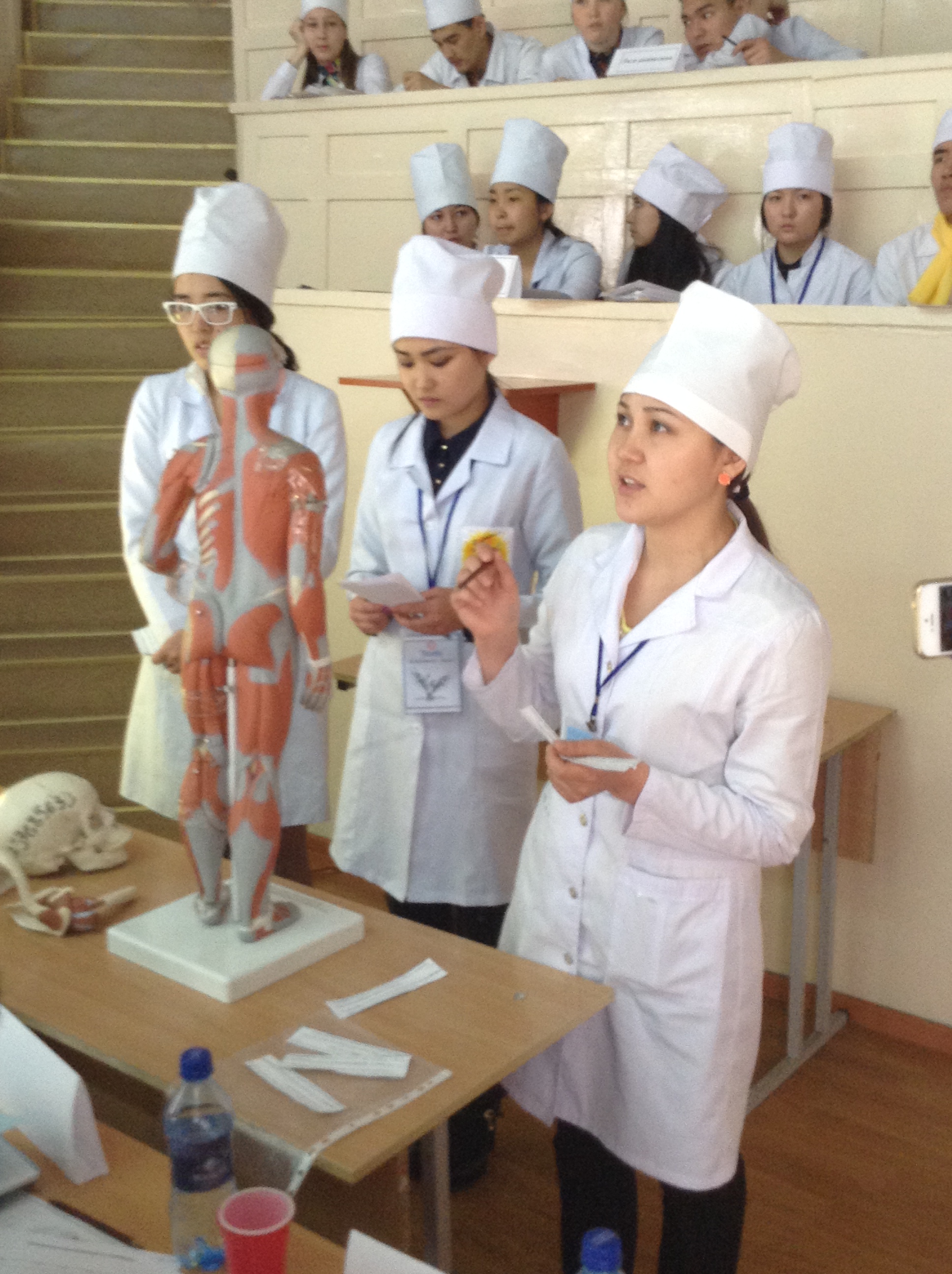 Олимпиада прошла очень интересно. Студенты 1-го курса показали хорошие знания по анатомии человека. Всего участвовали в олимпиаде 50 студентов.